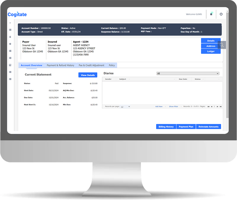 Customize billing for your lines of business, payment plans, billing and statement fees, state-mandated fees, notifications, and more. Adaptive API technology ensures seamless integrations with policy administration, payment vendors, and general ledger.